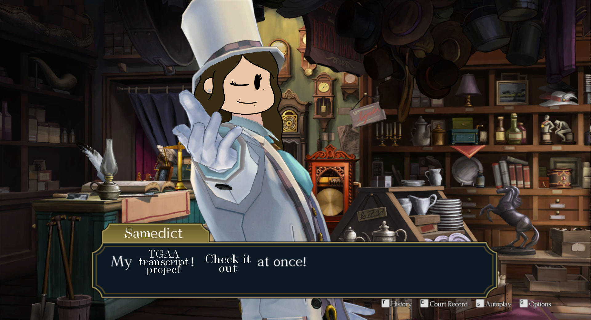 Welcome to the Ace Attorney Text Project, created and maintained by Steamed Sams! The intention of this site is to document text from the Ace Attorney series, with side-by-side comparisions of the original Japanese text and its localized English equivalent. That way, you get both the Japanese and English scripts- all in one place! Right now, I'm currently working on transcribing "The Great Ace Attorney Chronicles," but I may expand to other games if there's demand! Want to see how the text differs between languages? Want to study how your favorite character speaks in Japanese? Just want all of the text in the game in one place? This is the place for you!
